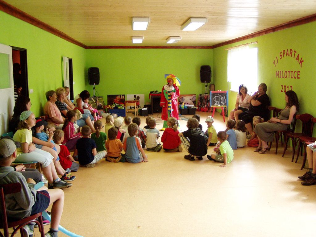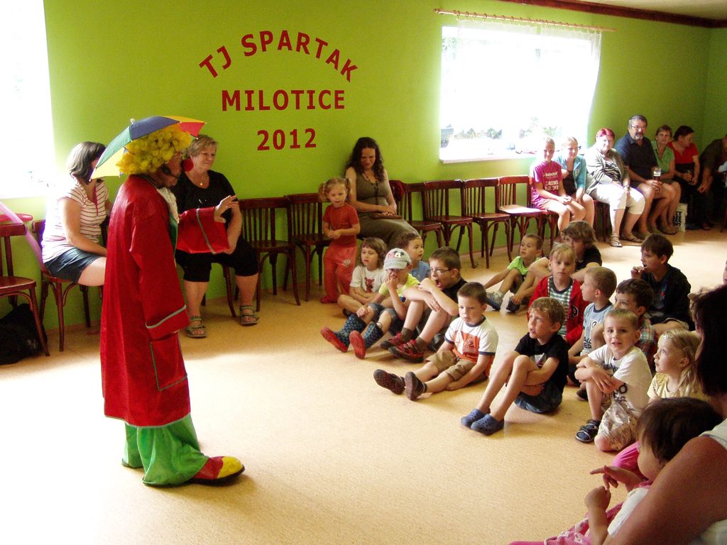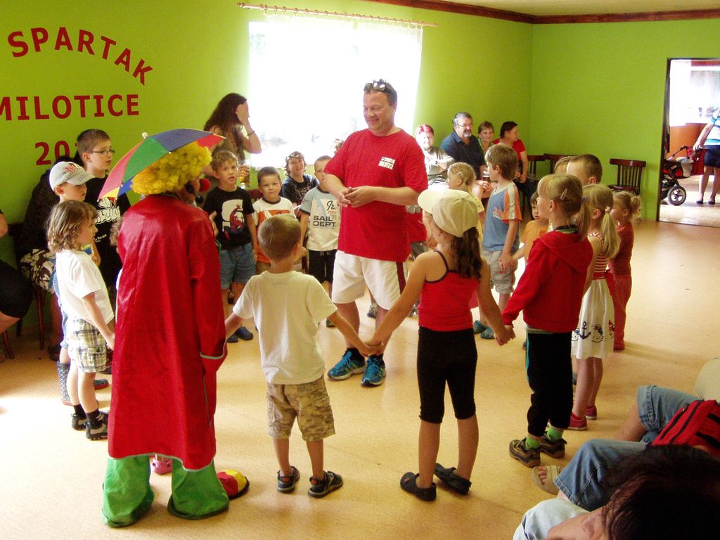 V neděli 23.06.2013 uspořádala TJ Spartak za pomoci OÚ v Miloticích nad Bečvou odpoledne plné zábavy pro děti z Milotic a okolí. Díky nepřízni počasí se musely některé atrakce zrušit, ale i tak se bylo na co dívat. Děti bavil svým veselým programem klaun Pepíno Prcek, požární útok předvedli dobrovolní hasiči z Hranic, kteří dětem dopřáli také v dovádění v pěně. Dále si děti mohly zasoutěžit v hasičském útoku ze džberovek, v hodu míčkem na klauna, mohly něco pěkného vyhrát na kole štěstí a dokoce měly možnost svézt se v kočáře taženém koňmi. Na závěr si všichni návštěvníci mohli opéct špekáček venku na ohni. Děkujeme všem, kteří se jakkoliv podíleli na přípravě Dětského dne na Sokolce v Miloticích nad Bečvou. Fotografie poskytl Jiří Plánka.