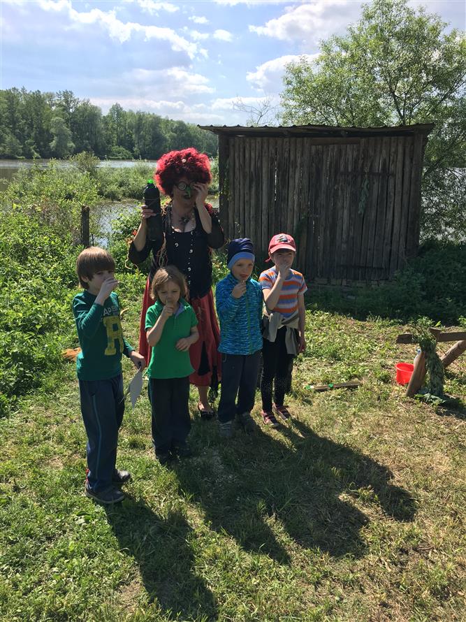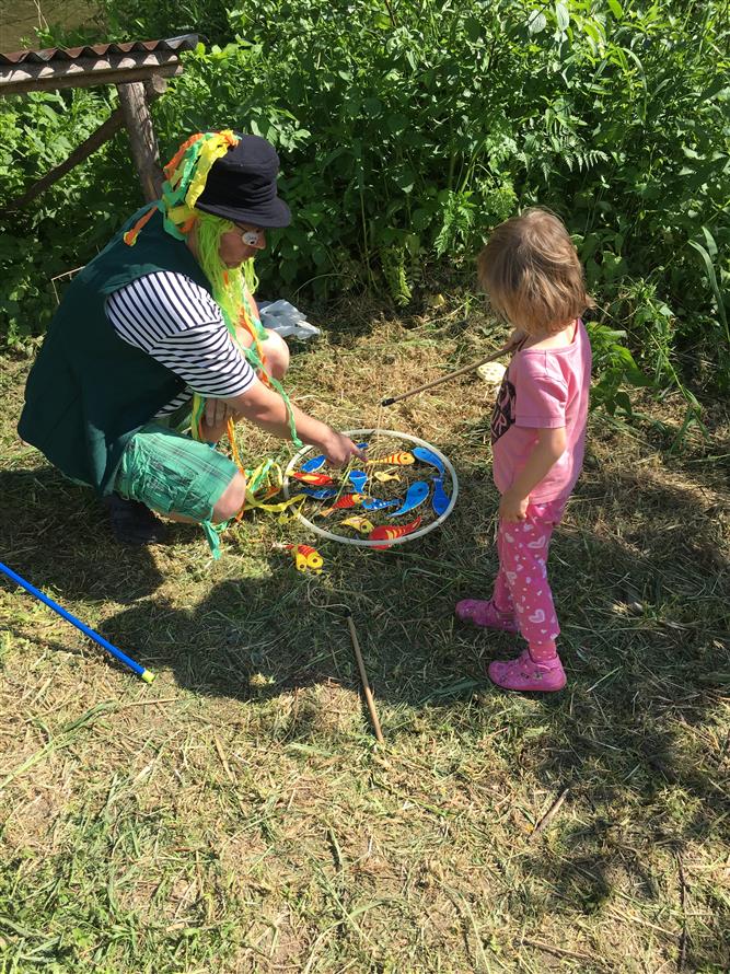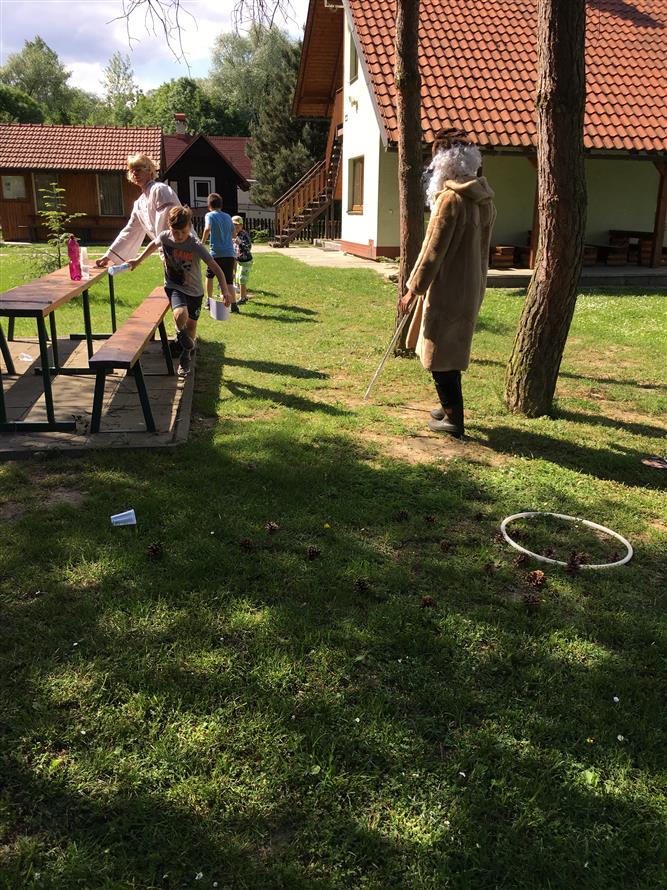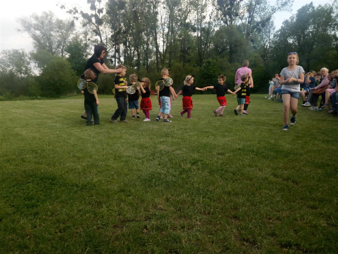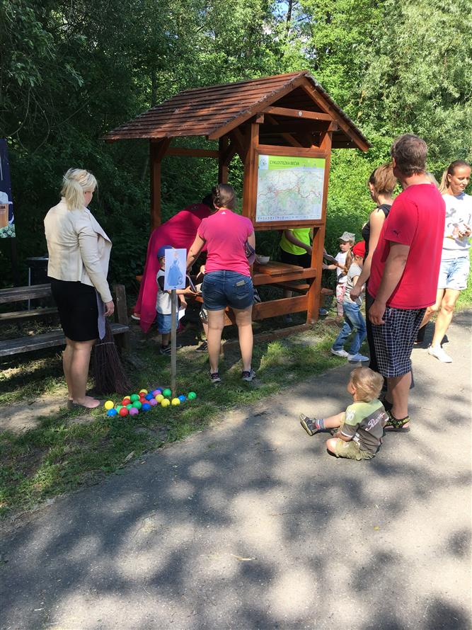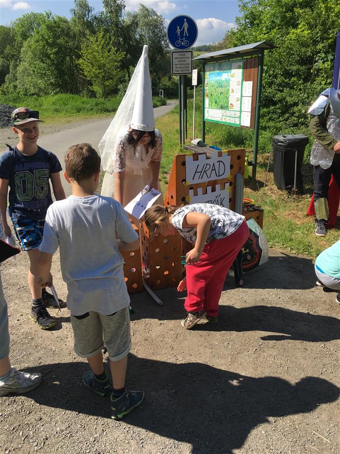 Pro děti bylo připraveno putování za pohádkovými bytostmi kolem překrásných štěrkopískových jezer v naší obci. Na devíti stanovištích plnily kluci a holky různé úkoly pod dohledem pohádkových postav - Bílé paní a Rytíře na hradě Milotičáku, u Ježibaby pak překonali strach, u Vodníka nachytali ryby do košíku, Hajnému s vlkem ukázali, jak umí střílet. Pomohli Máše a medvědovi posbírat hříbky do nůše, u králíků z klobouku ukázali, že dovedou házet i mrkví. Mrazík zas ukázal dětem, jak se dělá slalom kolem jedliček, Popelce pomohli přebrat hrách a fazole a u Káti a Škubánka nakrmili společně hladového psíka. Na cvičném hřišti SDH Milotice nad Bečvou pak byly všechny děti zaslouženě odměněny, pro všechny návštěvníky bylo připraveno bohaté pohoštění. Po vystoupení dětiček z naší mateřské školy následovalo samotné kácení máje se scénkou, kterou každoročně připravuje družstvo mužů našeho SDH. A pak již došlo na samotné kácení májky.
