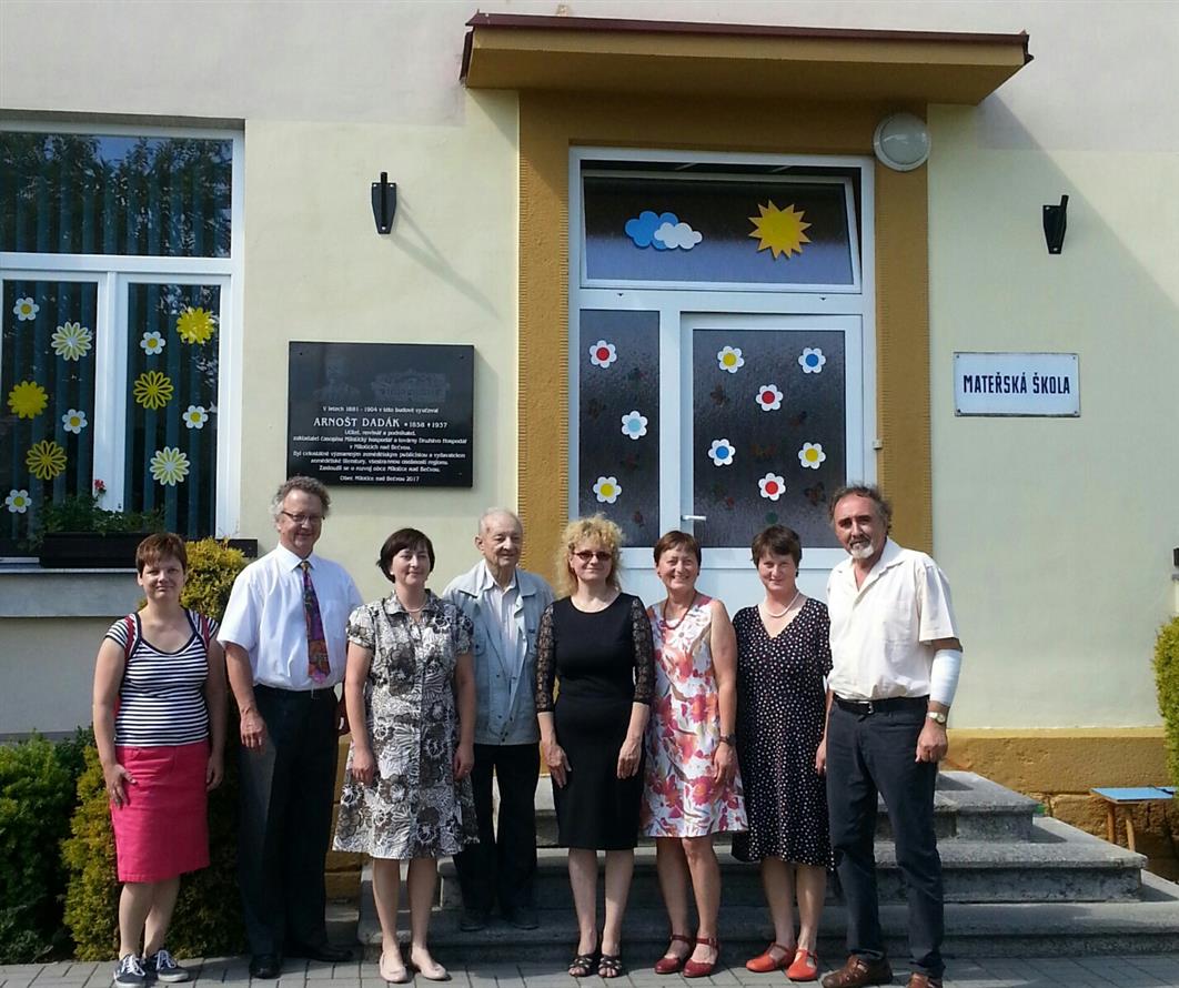 Několik desítek lidí se v sobotu 8. 7. 2017 za nádherně slunečného dne v mimořádně přátelské a uvolněné atmosféře sešlo před budovou MŠ v Miloticích nad Bečvou, aby se zde účastnili odhalení pamětní desky Arnošta Dadáka (1858–1937). Učitele, novináře, podnikatele, zakladatele časopisu Milotický hospodář a továrny Družstvo Hospodář v Miloticích nad Bečvou, který se velkou mírou zasloužil se o rozvoj obce Milotice nad Bečvou. Arnošt Dadák založil odborný zemědělský časopis, který za dobu svého více než šedesátiletého trvání poskytoval odborné rady třem generacím zemědělců. Vybudoval tovární podnik, který svými výrobky zemědělcům pomáhal a ve svých publikacích i květinových a ovocnářských zahradách přispěl k rozvoji okrasného zahradnictví i ovocnářství v republice.