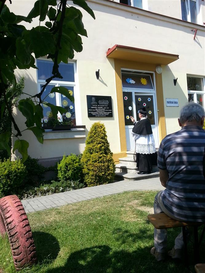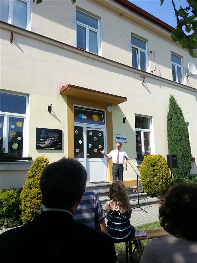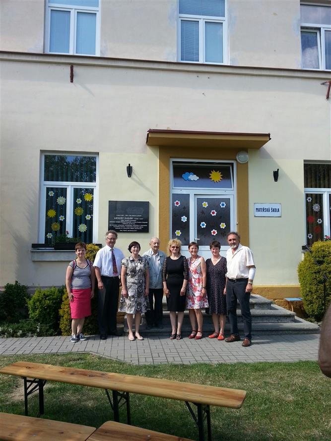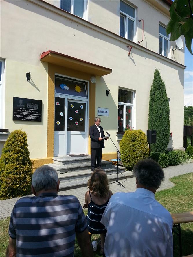 Odhalení pamětní desky panu Arnoštu Dadákovi na budově mateřské školy 8.7.2017