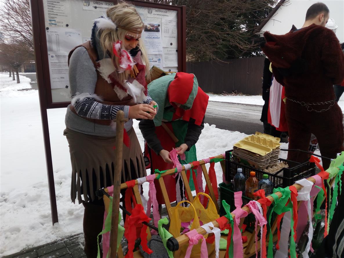 Průvod masek tentokrát chodil po obci dlouho, návrat na obec se konal až kolem 17,30 hod. Po malém občerstvení již naše ženy začaly připravovat vše k přípravě smaženice. Vajíčka se ale nerozbíjela jen tak, ale poctivě se vyfoukávala, aby se mohly použít na další akci , tzv. "velikonočních dílničkách". Celý večer byl ukončen kolem půlnoci.